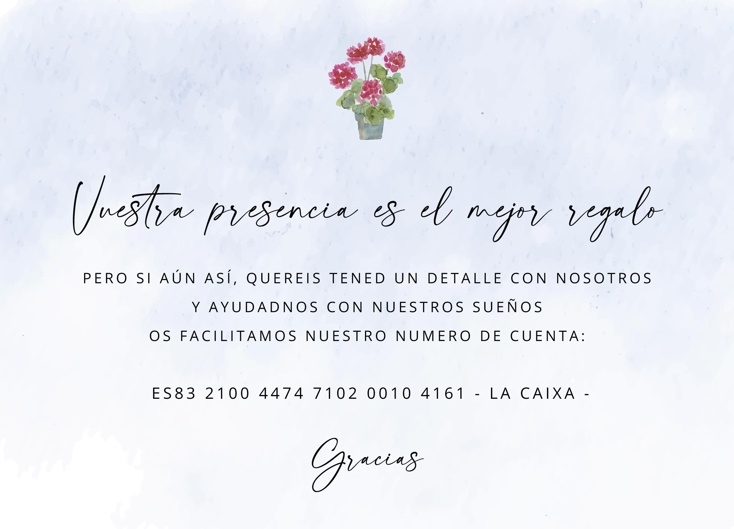 Vuestra presencia es el mayor regalo, pero si queréis tener un detalle con nosotros aquí os dejamos más información.